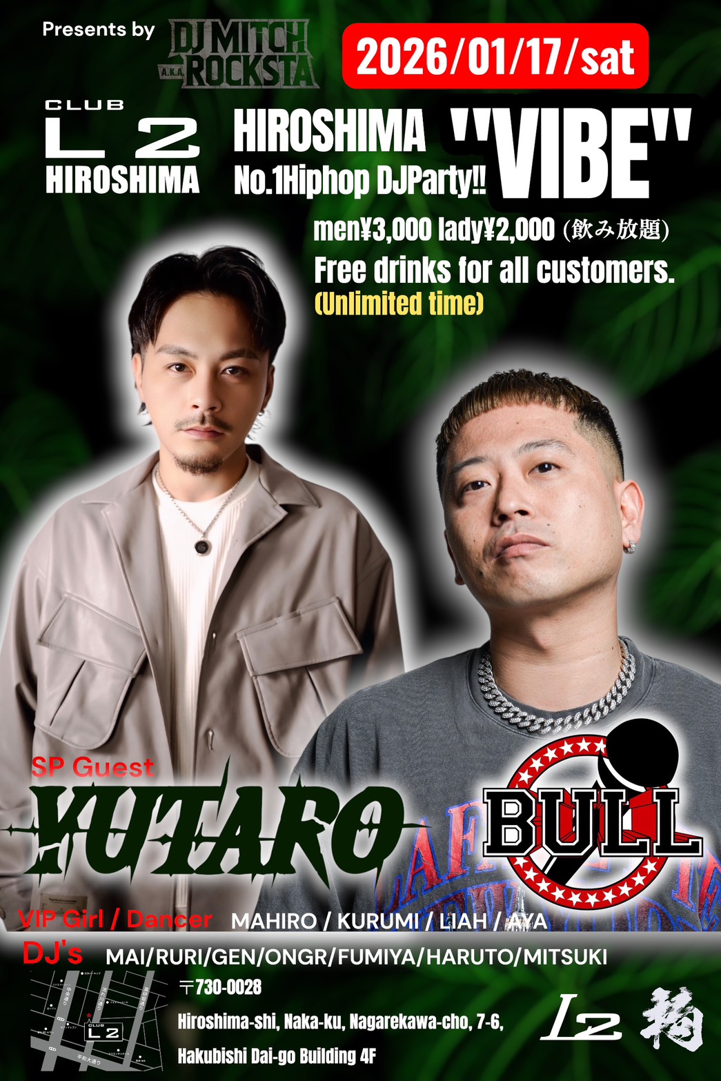 ¥300,000(+Tax) ・スタッフ×5名付 ・機材貸出し込み ・音響スタッフ付 ・DJ×1名(要望有れば) ・VIP5席貸切 |