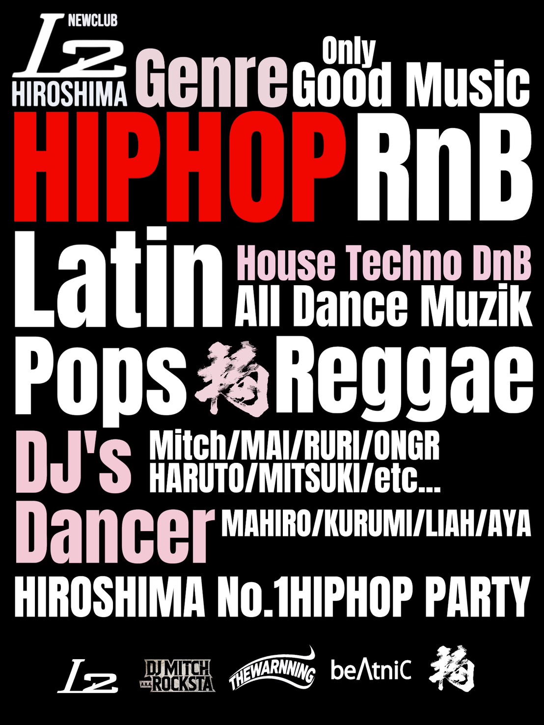 HIPHOPを軸に様々なジャンルでのDJingと演出で広島のNightlifeを盛り上げます。
